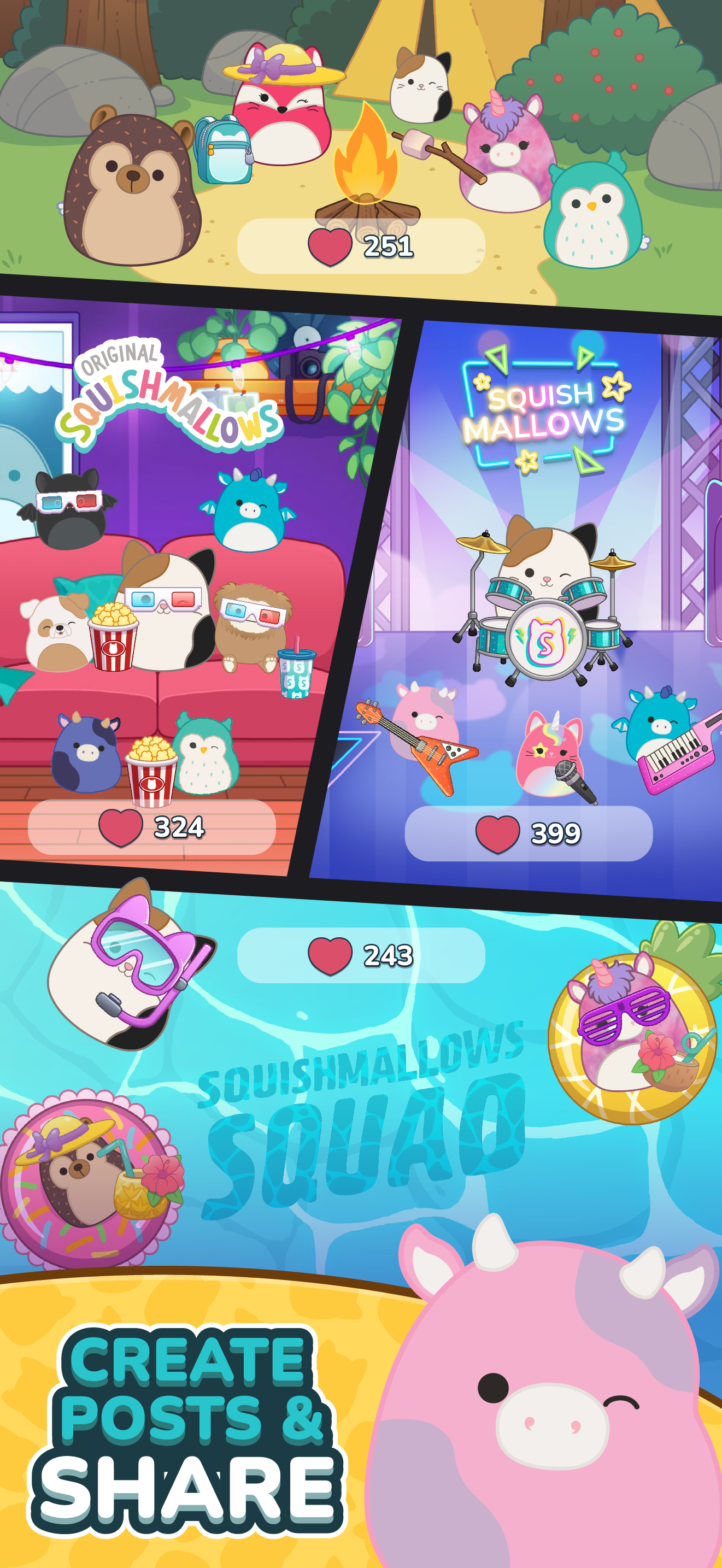 - Personalized Player Feed: Customize your player feed to show off your -Squishmallows Squad and creative designs. Share your progress and achievements with friends! Collect Backgrounds and Stickers to show off your collection with your own unique style.